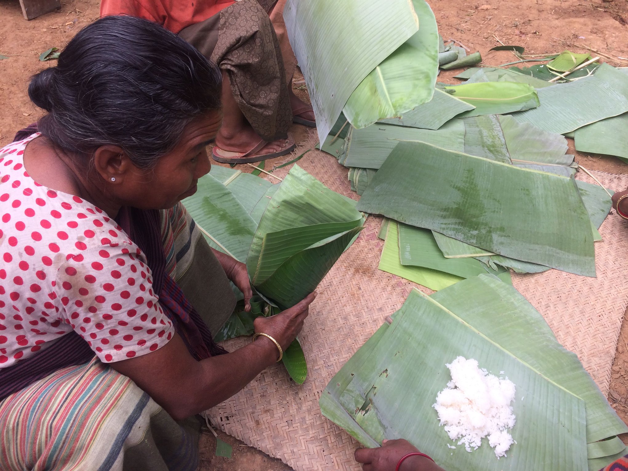 বিয়ে শেষ হবার আগেই আমি খেতে বসে পরলাম। যেটা নজর কাড়ল সেটা হল কোন থালা বা প্লেট নয় খাবার পরিবেশন করা হল কলাগাছের ঢঙ্গলে। কয়েকবছর আগে অবধিও আমার গ্রামে শুধু নয় উত্তর বঙ্গের সব গারো গ্রামেই এই ঢঙ্গলেই খাবার দেবার চলছিল। এখন যুগের সাথে পরিবর্তন এসছে , অনুষ্ঠানগুলিতে জায়গা করে নিয়েছে প্রথমে শাল পাতা তারপর প্লাস্টিক বা থার্মোকলের প্লেট। খাবারের আয়োজন ছিল খুব সাধারণ- ভাত, একটা ঘণ্টসবজি, ঐতিহ্যবাহী কিছু গারো রান্নার পদ যেমন- গারোদের প্রিয় শূকরের মাংসের ফুরাখাড়ি (চালের গুড়ো ও খাবার সোডা দিয়ে তৈরি) ,মুরগির মাংসের কাপ্পা এবং জঙ্গল থেকে সংগ্রহ করে আনা চালতার চাটনি।